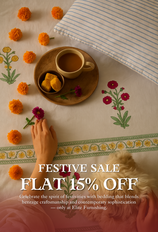 Explore our wide range of bed linen including Jaipuri Block Print Bed Sheets, bed covers, and Ajrakh Bed Sheet sets with unique designs handcrafted by local artisans. We use high quality cotton fabric with 300 thread count or higher to produce our bedsheets.